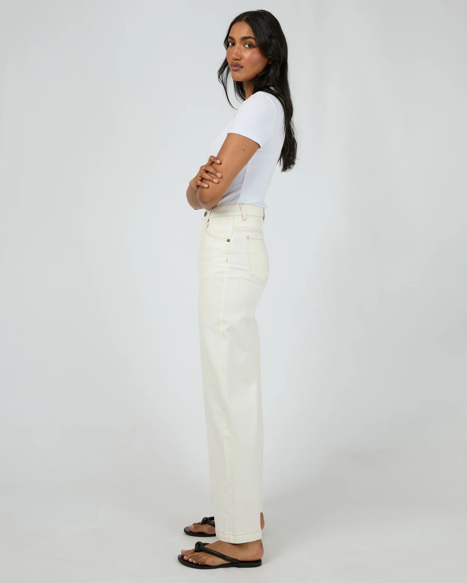 Wide leg; High rise fit