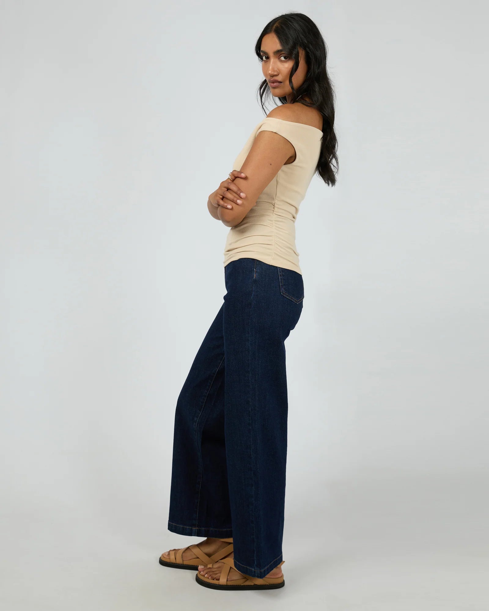 This off-shoulder stretch top combines effortless style with a comfortable fit. Crafted from a soft, stretch fabric, it hugs the body while offering plenty of stretch for a perfect, figure-hugging line. The asymmetric off-the-shoulder design adds a touch of elegance to any outfit. The ruched detail to the side body creates a cute fashion detail. For a dressier look, pair back with skirts or for something more casual back with jeans. Available in versatile neutral colours, our Kylie top is a must-have addition to any wardrobe.