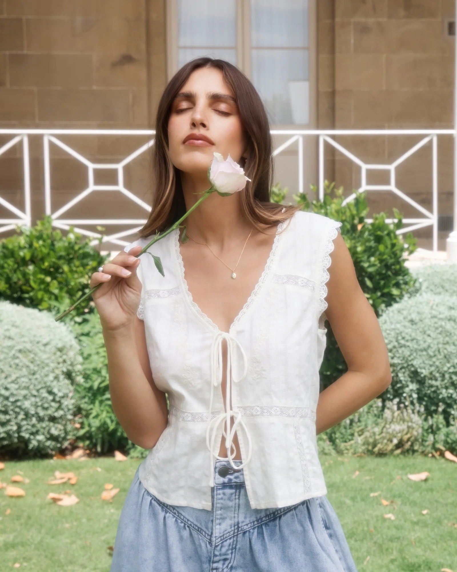 The Shayan Top in Yellow is a romantic, vintage-inspired piece perfect for easy days out and layered looks. Crafted from a soft cotton blend, it offers light texture and breathable comfort. Designed in a relaxed fit with a deep V-neckline, it features delicate self-fabric ties through the front and soft scalloped trims for a feminine touch. Finished with subtle gathers at the shoulders and waist for shape.