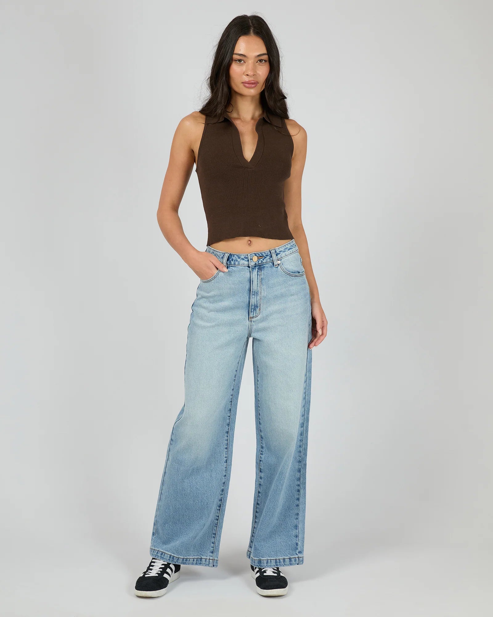 The Carrie Knit Top in Brown combines sophistication with comfort for a polished yet relaxed look. Crafted from soft, stretchy fabric, this top features a stylish knit collar that adds a refined touch to your outfit. Its fitted design offers a flattering silhouette, making it perfect for both casual and slightly dressier occasions. Whether paired with jeans for a chic daytime look or tucked into a skirt for an evening out, this versatile top is a wardrobe essential.